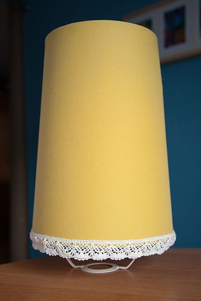 2. Абажур под потолок или на торшер (можно настроить механизм), изначально Ikea, но обрезан и дополнен тесьмой. Цвет немного зеленее чем на фото. В высоту примерно 31см.