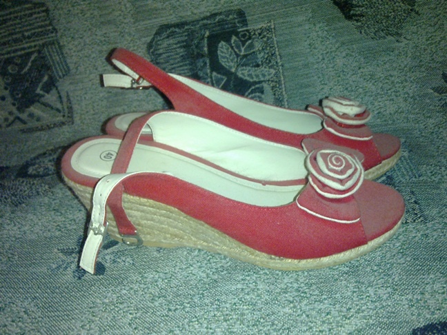 4. Туфли летние на танкетке, светло-красные, р-р 40, на не очень широкую ногу, новые (у меня широкая, носить не могу, давят сверху). Ни разу не надевала.