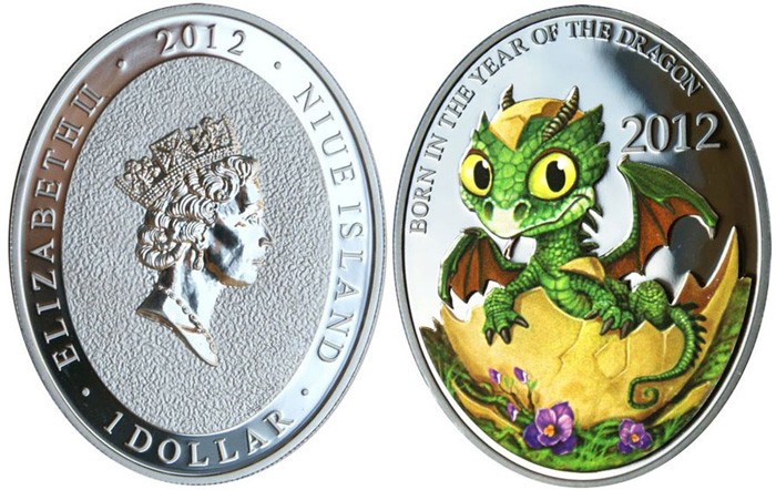 Остров Ниуэ в 2012 году представит три новые монеты серии «Лунный календарь» — «Дракон с Земным шаром», «Рожденным в Год Дракона» и «Два дракона». Отчеканены монеты в Германии на монетном дворе «B. H. Mayer’s Kunstprageanstalt».