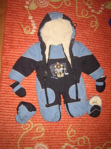 продам зимний комбезик для мальчика КИКО до 80 см +пинетки+вари. На овчине, б/у.