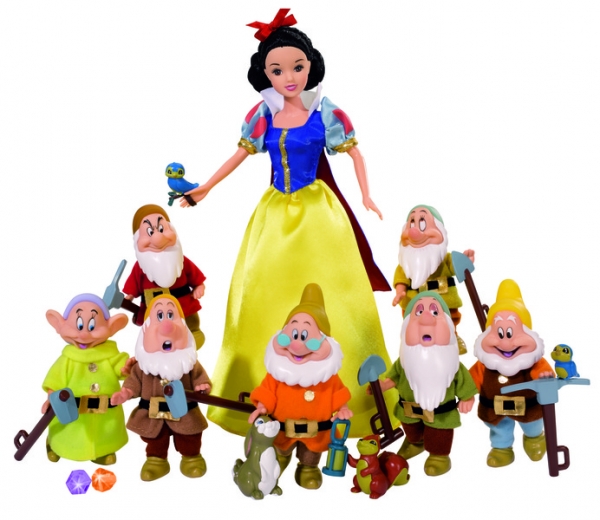 - страшнючие непрокрашенные гномы, Белоснежка тоже страшненькая, вся в пластиковых заусенцах и еще типа музыкальная - надтреснутым китайским динамиком поющая почему-то "Барби Барби гёл",