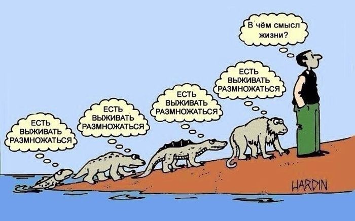 По теме: смысл жизни - в сохранении вида. Это вообще. В частности - для каждой особи смысл свой. Для меня - не делать зла и нести позитив (по возможности). Не скажу, что я с этим на отлично справляюсь (особенно с возрастом - достают, блин, всякие гадкие, никчемные людишки, поубивала бы ), но в целом я человек хороший. И это хорошо.