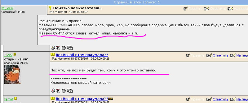 Если администрация примет решение, что неологизм "пох" является нарушением п.5. то будем его писать со звездочкамиГы. Новая метла она конечно по новому метет. Но, насколько я помню, предыдущая метла, т.е. Мужик, пару раз правила мои посты содержащие "нах" или "пох". Вы бы уж определялись с преемственностью как-нибудь.