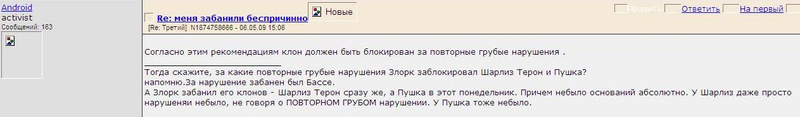 Ответ на сообщение Re: меня забанили беспричинно пользователя Третий