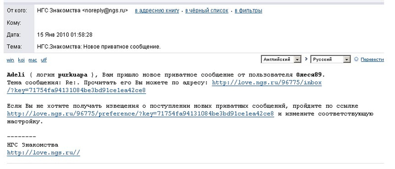 уведомление об этом удивительном событии приходит мне на почтовый ящик