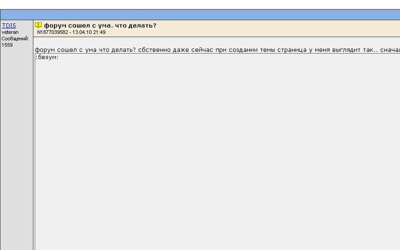 я так понимаю - это реакция на какой то смайлик? причем когда листаешь, сам форум, если в сообщение другие смайлы. то все в порядке, если этот - то наблюдается вот такой квадрат. что делать? выйти - убить все куки и зайти снова - не помогло( очень мне печально так общаться(