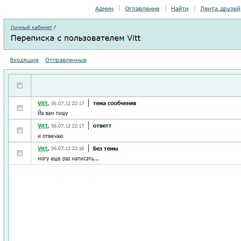 Ответ на сообщение зачем объеденены в одну паку входящие и отправленные сообщения????? пользователя Vitt