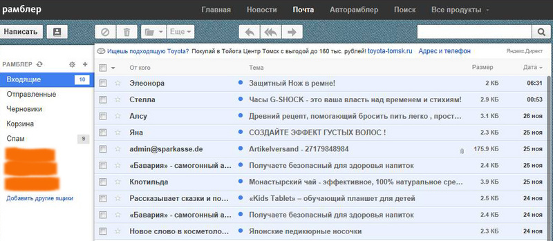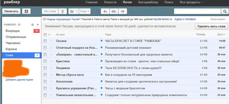 а на рамблере и во входящих и в спаме. там сквозняк полный. причем совершенно непонятно как работает спам-фильтр - везде однотипные сообщения. более того - про Баварию есть и там и там ))