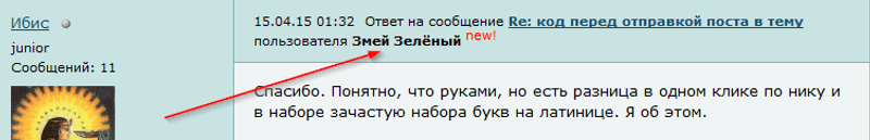 Ответ на сообщение код перед отправкой поста в тему пользователя Ибис