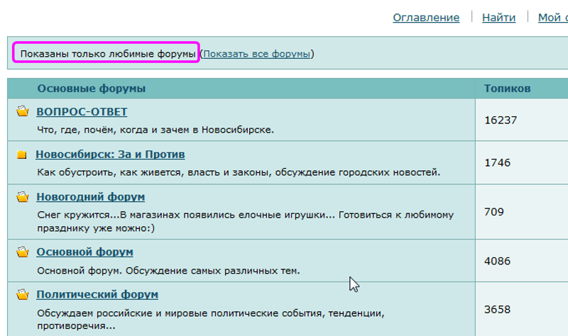 "полноценное" с главной страницы форума не видно - это разПри правильно поставленной галочке главная страница форума это и есть "оглавление здорового человека".