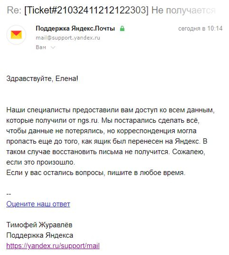 Ответ на сообщение при переносе почты на Яндекс утеряны письма за последний месяц пользователя Hel(l)