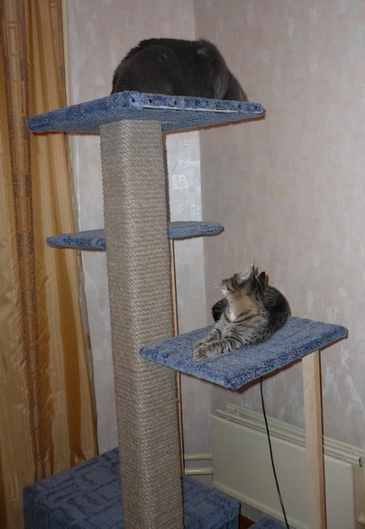 Стояла эта конструкция под небольшим наклоном до потолка. А два котенка по ней вверх-вниз нарезали. Незабываемое зрелище