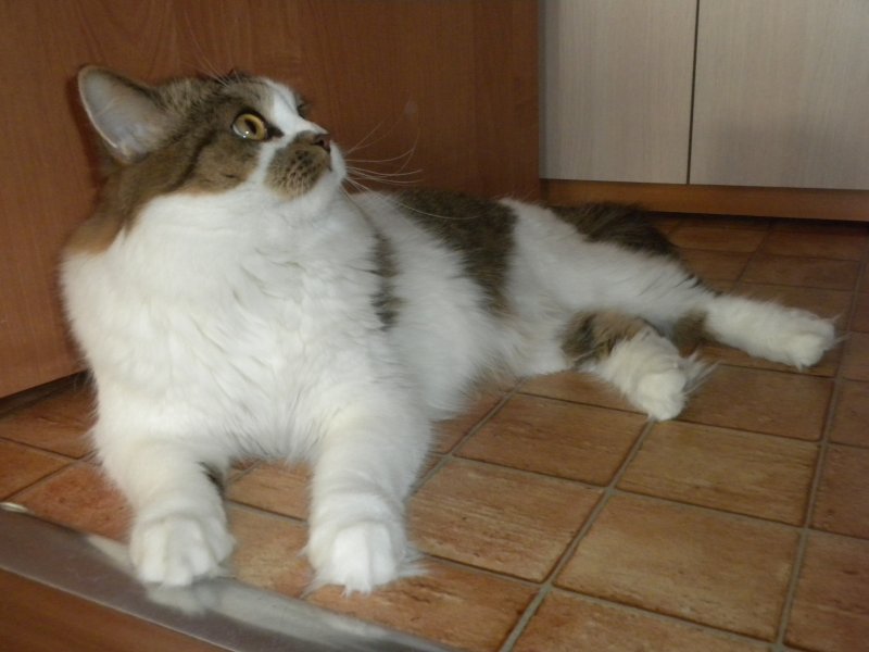 "Дина наша вчера нас от потопа спасла... соседи затопили. На кухне готовила, дина залетает на кухню дико мяукает и бежит в туалет, я не реагирую...она подошла ко мне, начала по ногам когтями царапать и снова бежать туда. Я за ней, захожу в туалет она в потолок уставилась и мяукает, смотрю а у нас весь потолок со стенами в воде, я бегом к соседям... вообщем успели предотвратить начавшийся потоп))) вот такая история у нас вчера произошла)"