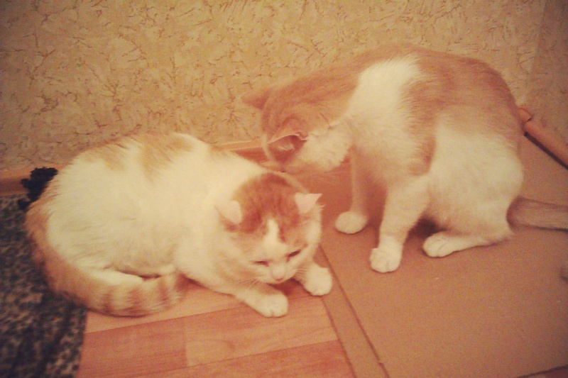 конфликтов не было. Правда Бублик очень стрессовал, первые два дня жил под ванной, малышу за свою жизнь тоже пришлось натерпеться.. После травмы оказался отказником в Сириусе, откуда его забрала на передержку добрая женщина, про него была информация Вконтакте, там то мы с Аленой о нём и узнали случайно совершенно, Алёна рассказала мне о своем желании взять малыша к себе и спросила моё мнение.. Я сказала, понятное дело, счастье Алмаза для меня на первом месте, и если котики уживутся, то буду только счастлива. И Алмаз не подвёл