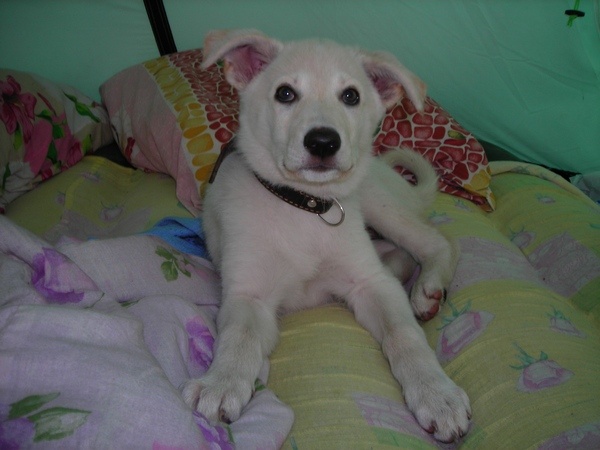 Здравствуйте, меня зовут Бонечка! Я родилась на какой-то строительной базе, недалеко от ТЭЦ5 где-то в начале мая 2010г….. Мы жили втроем: я , моя Мама и мой братик, нам было очень хорошо втроем, мы постоянно бегали и играли с братиком, а мама лежала и наблюдала за нами. Но вот однажды теплым июньским вечером мы очень сильно заигрались с братиком возле дороги и я не заметила, как выскочила на дорогу….. яркий свет фар, сильный тупой удар в грудь, визги тормозов… боль пронзила мое маленькое щенячье тельцо , в голове все закружилось, в глазах потемнело….Не знаю сколько я лежала на дороге, но всегда рядом со мной лежала моя мама и лизала мне мордочку, она очень хотела мне помочь, но не могла…. Ее запах, ее мокрый язык, ее ласка помогали мне выжить в этот ужасный момент… а братик сидел в траве, смотрел на меня и плакал! Мимо проносились большие машины, стояли какие-то люди на остановке и просто смотрели….. смотрели на то, как я умираю…. Но вот вдруг остановилась одна машины, к нам подбежали парень и девушка и оттащили меня с дороги. Моя мама стала очень переживать лизать им руки и так жалобно смотреть в глаза, она просила их спасти меня… Дальше я плохо помню, все как в тумане, машина, больница, другая больница, уколы, капельницы…. Я очень боялась, ведь я осталась одна, без мамы и братика, 2 дня я жила в больнице в клетке, и я не знала, что будет дальше… Но вот спустя 2 дня они пришли, пришли и забрали меня в новый дом. У меня появилась мягкая кроватка, много игрушек, вкусная еда и главное, у меня появились хозяева!!! Я была очень слабенькая, но они выхаживали меня, ставили уколы, и сидели со мной на полу, пока я не усну…..