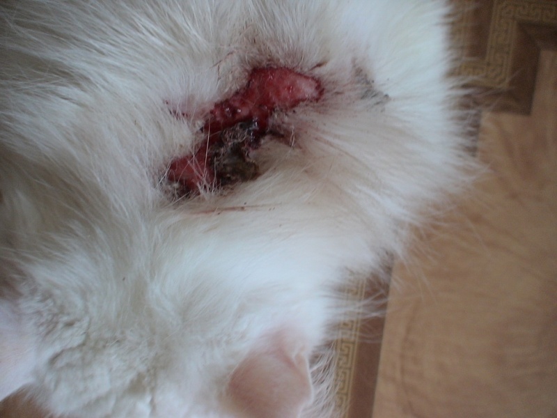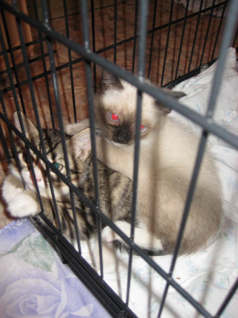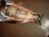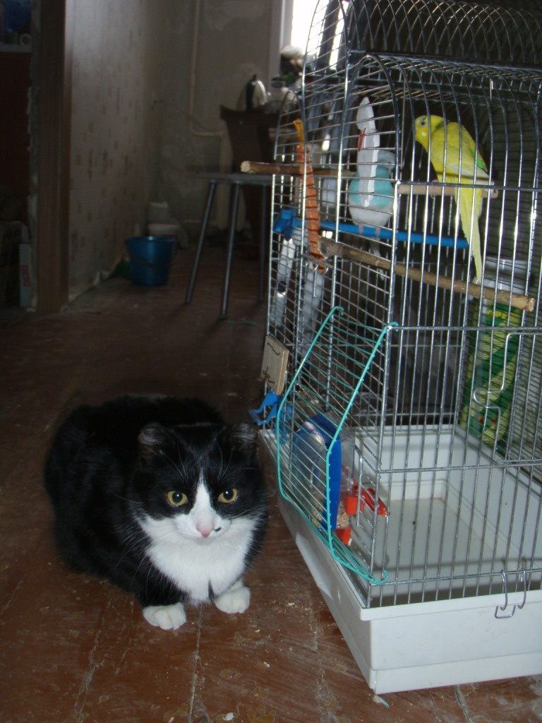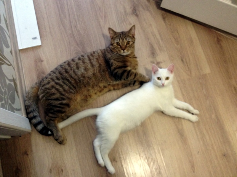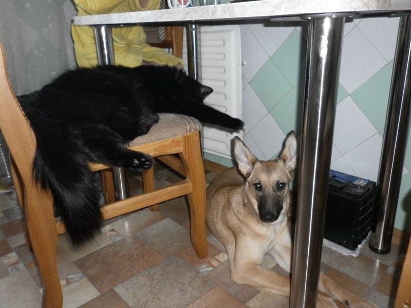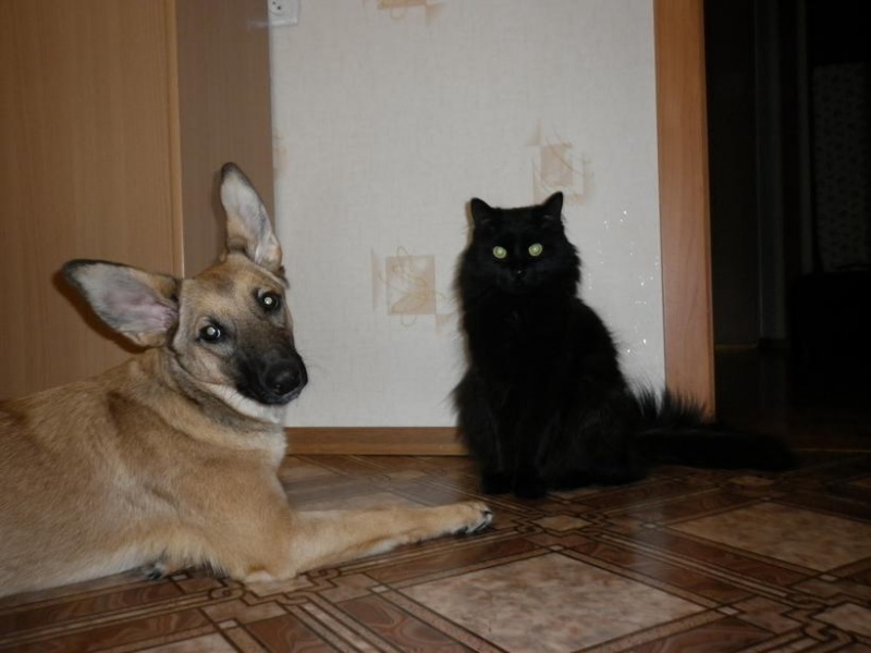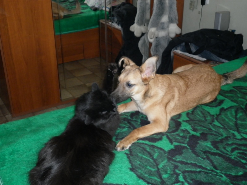Она совсем освоилась, ей поставили прививку, шовчик окончательно зажил. С котом уже играют, спят на кровати вместе с хозяевами