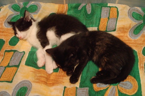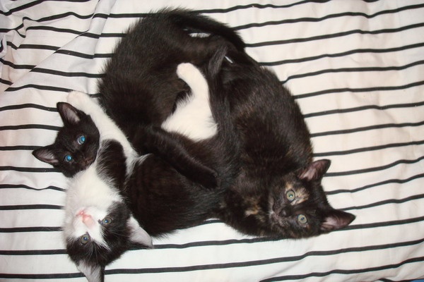 купила им когтеточку маленькую, так они ее с таким остервенением мутузили и когтями, и зубами, что мама не выдержала и тоже присоединилась