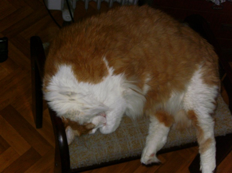 Нда, разительная перемена на лицо))) пора менять-то банкеточку, а?Дк не хочет! ))) Как облюбовал, с самого начала, так спать именно на ней предпочитает (при этом свешивается всё, что только может свеситься![]()