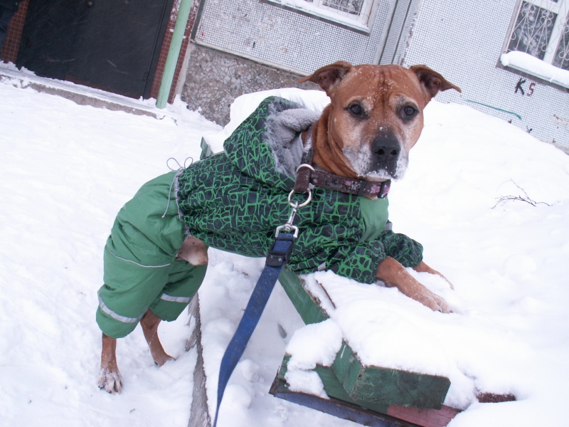 насквозь больная боксериха, страшно линяющая сейчас, зимой, с выбритым и еще не обросшим после операции животом, с больными почками как-то, знаете ли, мерзнет уже при -10 с ветром. пока добегаем до места выгула (3-4 минуты от подъезда), собака начинает поджимать все лапы. вариант гулять во дворе не рассматриваем.