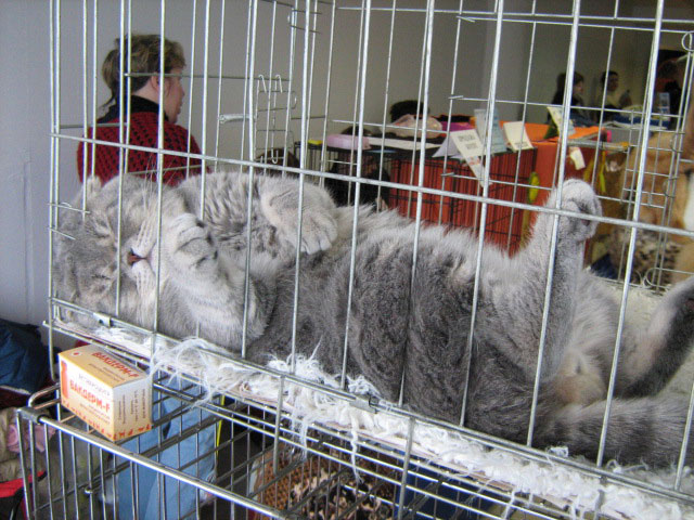 . так сидел и таращился, еле из клетки вытащили на награждениеОдна кошка - хорошо, две - ещё лучше, а три - просто замечательно!