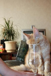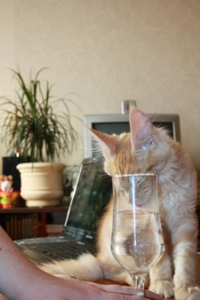 Иногда остается на донышке, так всю голову засунет, пытаясь дотянуться!