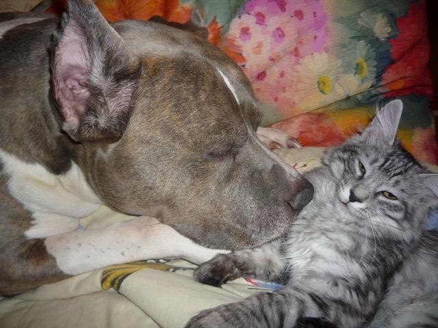 в итоге подружка просто побоялась, что стаффик повредит кошь и отдала ее родителям... но там кошке хорошо