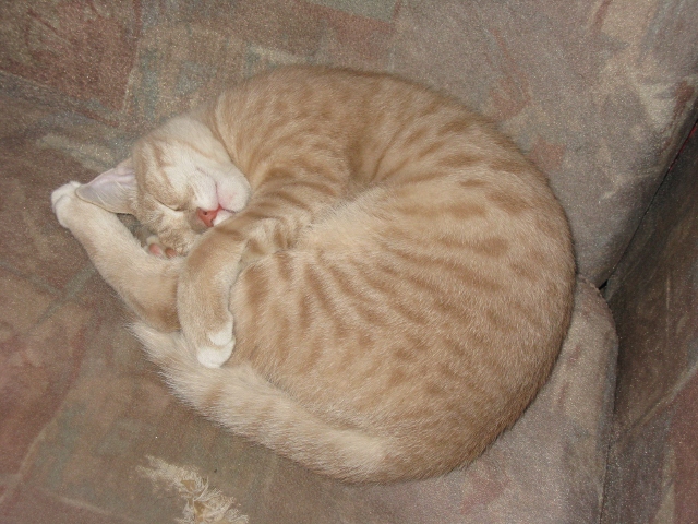 У вас явно наш брат-близнец живет. Только вот наш клубочком почти не спит.Так ему просто животик мешает клубочком свернуться