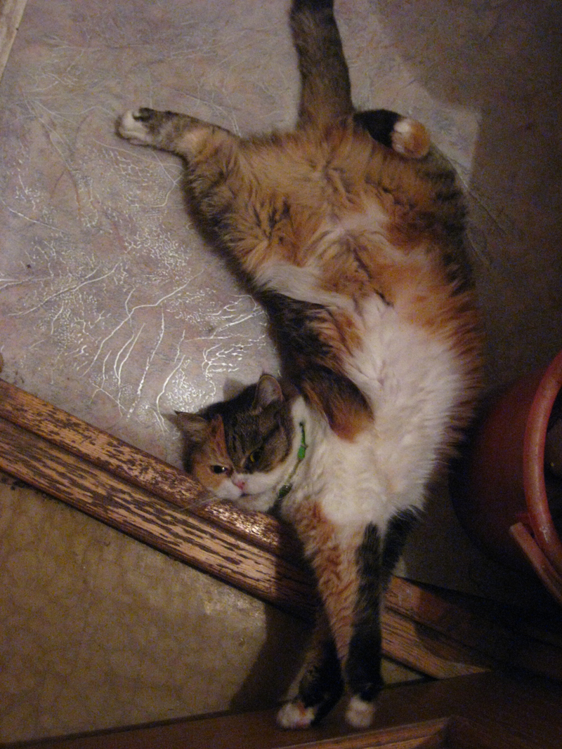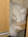 Тань. это как он забрался? шкаф- типа витрины закрытой...Не-а, это шкафчик-тумбочка, ожидающая ремонта (пару шарниров купить и обклеить по-новой).
