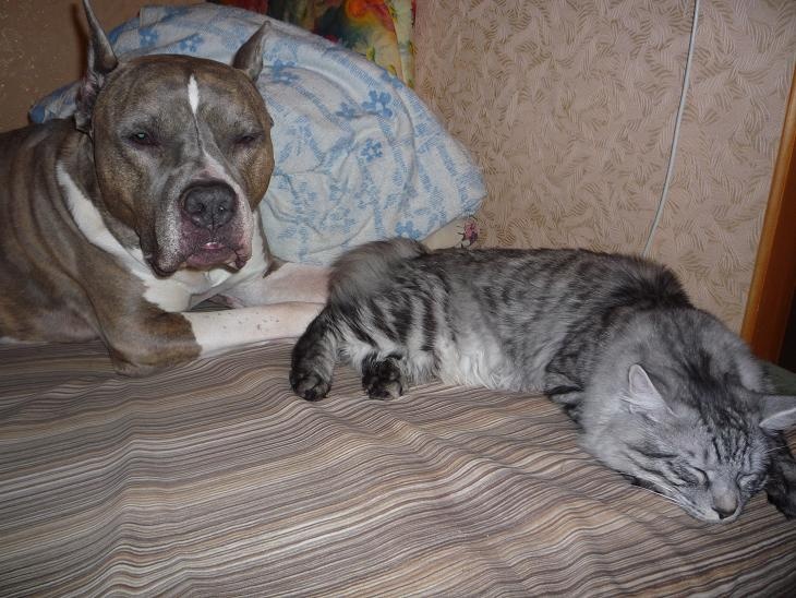 наши никогда так не спят, вместе. Где то рядышком, но никогда в обнимку.Ответ на сообщение Re: а как спит ваш питомец - 2 пользователя Alena29111981
