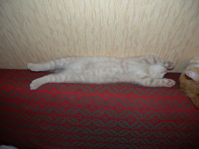 Не подумайте чего плохого - с котом все в порядке, это он так сладко спит....Ага, предварительно дёрнув валерьянки, судя по тому, что даже голову положить нормально не смог![]()