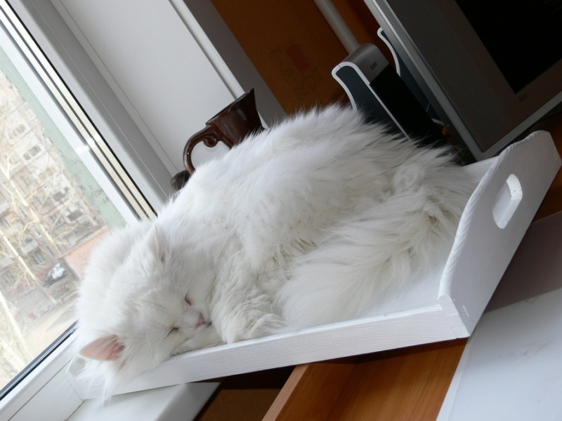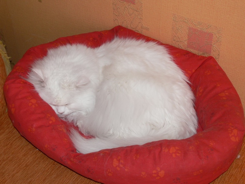 а вот и мой Мусь в красной лежанке, один, соседий не любитШикарно смотрится- ослепительно белое, на огненно-красном!![]()