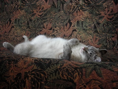 розовое пузико!Ответ на сообщение Re: а как спит ваш питомец - 2 пользователя Лисёнка