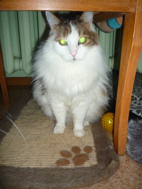 Вот и скажи после этого, что кошки цвета не различают.Попавший в глаз луч света у большинства кошек отражается желто-зеленым цветом, а у синеглазых - красным.Это улучшает зрение кошек в сумерках. Оно как минимум в шесть раз острее, чем наше. Но в полной темноте кошка все же не видит. Приблизительно до середины нашего столетия считалось, что кошки не различают цвета. Но современные научные исследования показали - кошка не только различает малейшие оттенки серого, но и распознает большинство цветов. Хотя цвета,наверное, не имеют для кошки столь важного значения, как для нас. Во-первых, почти все животные, за которыми она охотится, имеют схожую окраску. тому же в сумерках, когда она обычно выходит на охоту, цвета вообще плохо различимы.