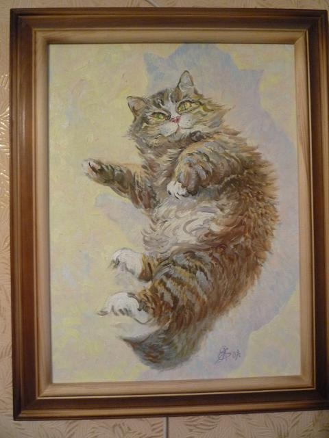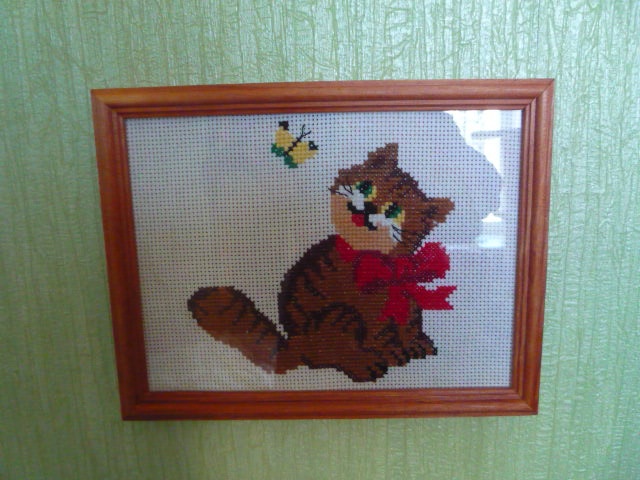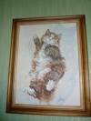 Картина "Котик на коврике " 1Вторая такая же , только лапки задние по-другому и висят в разных комнатах
