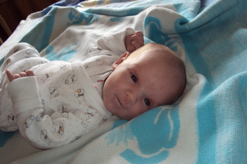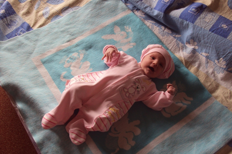 Я смотрю и нарадоваться не могу. За 2 недели мы научились реагировать на резкие звуки и свет, наели щечки и небольшой второй подбородок