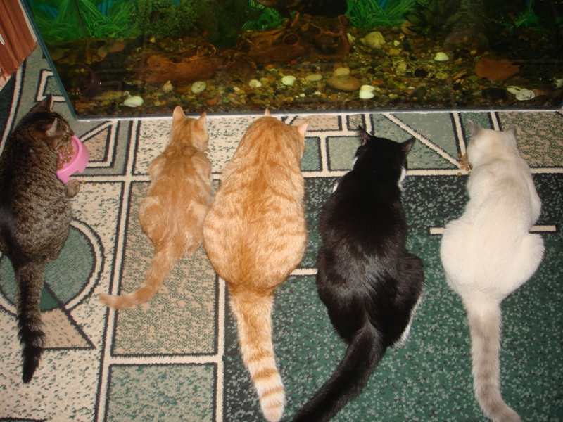 я снимал хвост ))Вот у меня же 7 кошко сокровищ: трое белоснежных + трое чисто-чёрных + Малюсенькая и, конечно + нано-динозавр.