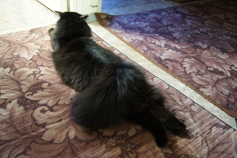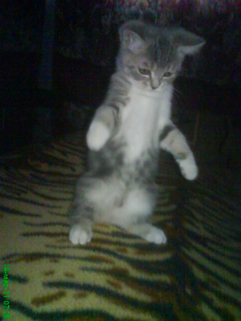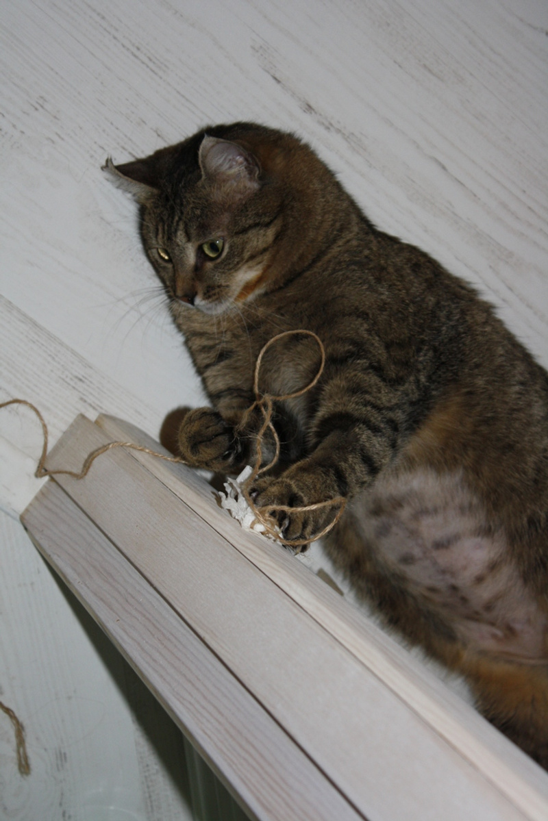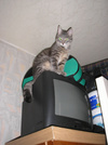 Запрыгивает на высоту как и прежде, основной инстинкт еще не утих - на кошку Кэти лезет. Приходится отгонять его от нее, а то эта дурочка не понимает, что он нее хочет. Пристает он только к ней.