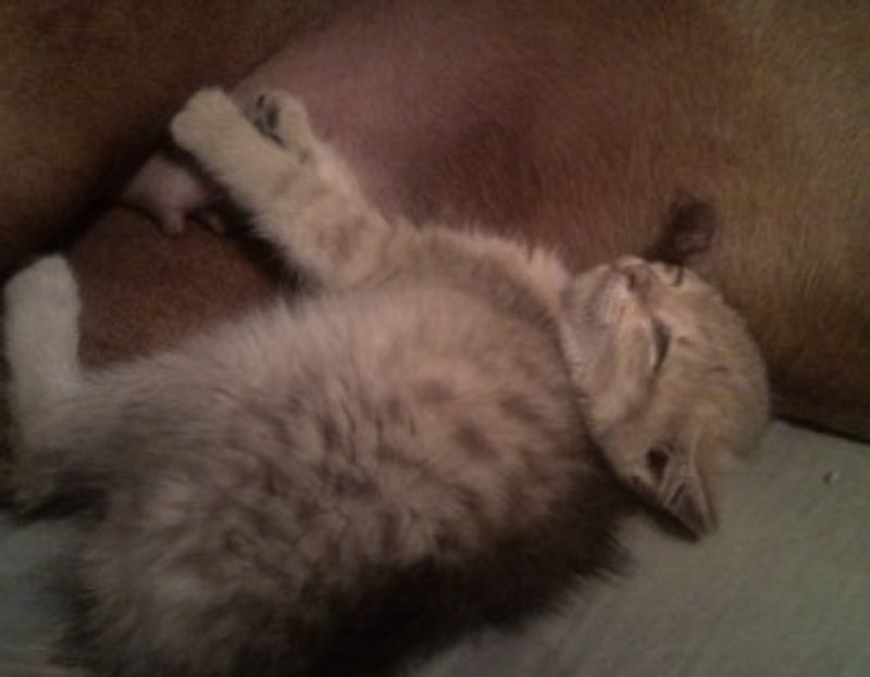 ну кот , который подобрашкин бывший сразу же понял что она оттуда же откуда и он ( то есть с подъезда ) , да и вообще кот сам по себе добродушний и сразу начал ходить за ней по пятам , сейчас носятся на пару , кошка самая взрослая всегда вела себя с любыми подобрашками как мама ( примерно на 2-3 день начинала облизывать ) , средняя кошка поначалу немного шипела , а теперь просто не реагирует , а собака слепая и ей все что мохнатое , то родноено свято место - пусто не бывает , опять в подъезде подобрала кошечку ..