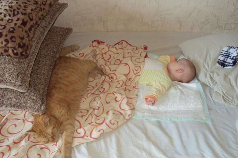 Нет, вру, у кота новая ответственность появилась - ребенок! Он же плачет иногда, защищать надо!