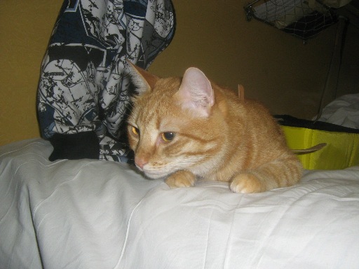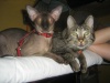 и не понятно от чего... толи поиграть ему хочется с кошей, толи её ему хочется. На прежнем месте у него был ещё старший кото-товарищ, они очень славно играли, а сейчас прям видно по его мордашке, что он скучает, тоскует. Я пытаюсь с ним играть, но он так смотрит на меня жалобно и уходит на лежак