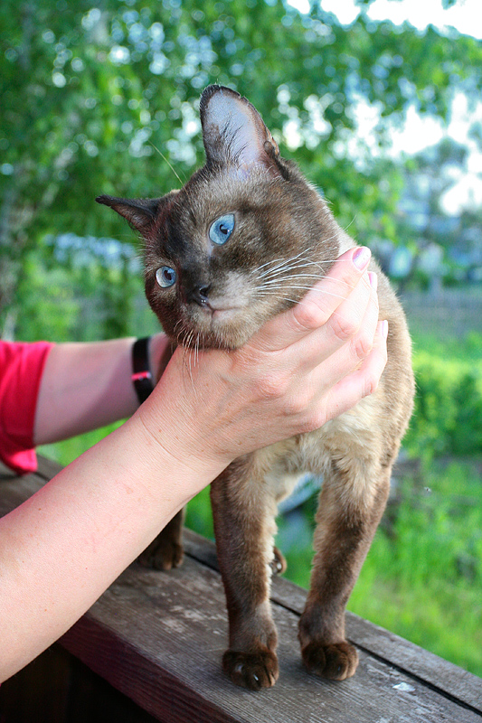На фото: котеец очень вертелся, поэтому пришлось держать.