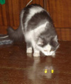 ее глаза еще и в стене и на полу отражаются - кошко-прожектор блин
