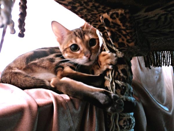 Это бенгал, насколько я понимаю.я вот тоже так подумала, но окрас не пятнышками, а "мраморный", похоже.