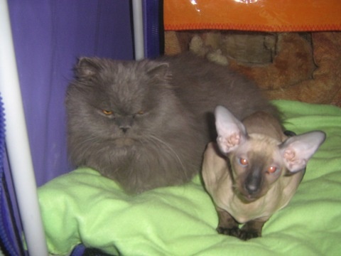 Жаль мой кот его к себе близко не подпускает. Совсем не привык к другим животным. А маленький ему проходу не дает, все играть с ним пытается, прыгает на него, а тому не нравится, он рычит и убегает но, не всегда успешно