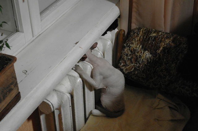 Мы его специально караулим у батареи. Кучу снимков сделали,чтобы получился. Крутится ведь. Умильный прям сама не могу