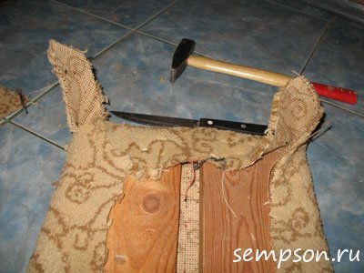 . На коврик ушло 50 руб(я длинный отрезок порезала и сделала коврик), на коктедралки тоже полоску ковролина не толстого взяли, около 40 руб. вышло. Для коктедралки прибивали мелкими гвоздиками к доске.