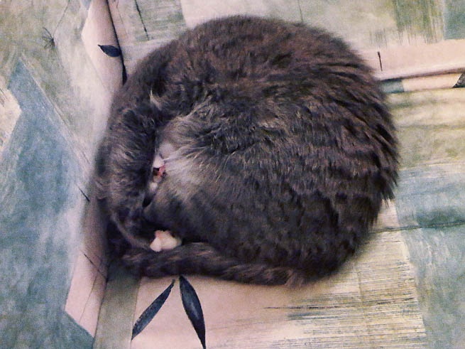 Наша Тюлька за редким исключением всегда спит клубочком, чем плотнее клубочек тем лучше, стремится к идеальной форме Вот сегодня всё спрятала, а носик забыла