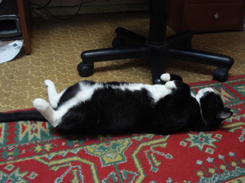 Когда сфотала, уже фотки пыталась в боле-менее приличный вид превратить, Максимка шугнул Вайсика, ну вот скучно ему стало, а все спят. Так Вайсик вместе с укрывалком и спрыгнул с кресла и поскакал дальше, весь заспанный и в атаманской бурке - вот то ещё зрелище было
