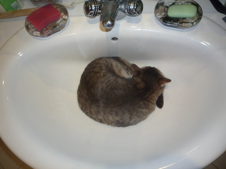 А вот сосед по фото Микус- паразит, пытался из тазика лоток сделать ..