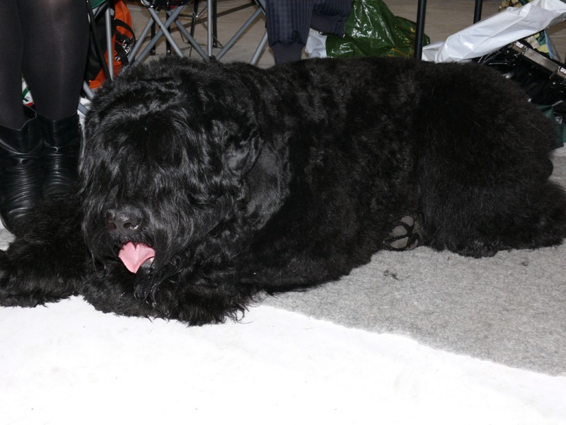 Народу и собак было очень много, а места очень мало, ну и собаководы, конечно, своим поведением не порадовали. Моя красотуля до сих пор дрыхнет, только поесть и погулять просыпается, т.к. устала очень - преочень (мы еще на БЭСТы оставались и уехали в десятом часу вечера), но ей простительно все, т.к. порадовала она нас вчера дважды лучшим щенком породы